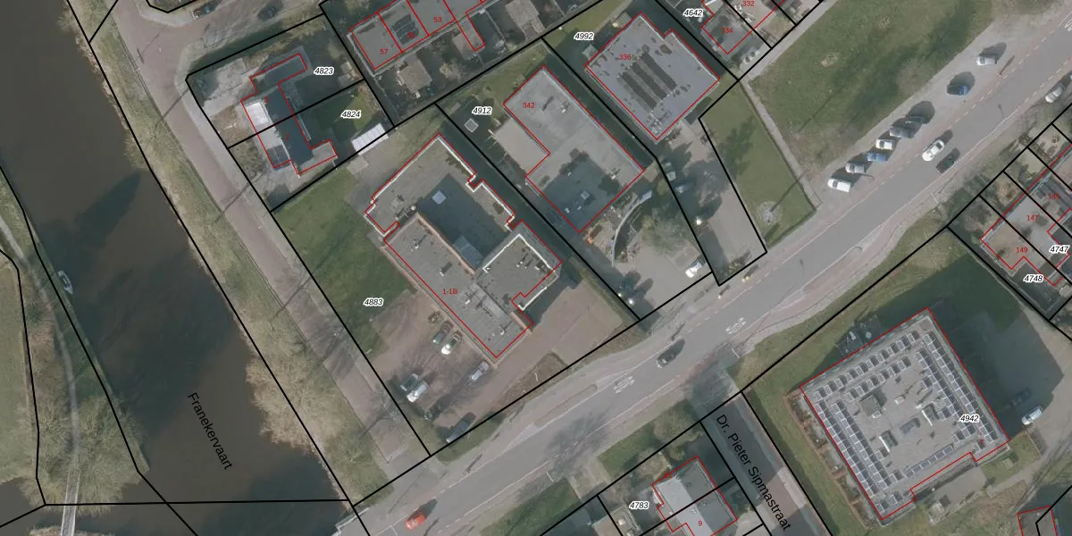 Dr. Obe Postmastraat 1-A is gelegen op kadastraal perceel SNE00A4883. Deze kadastrale aanduiding is uniek en wordt gebruikt door het Kadaster om eigendomsrechten en andere zakelijke rechten vast te leggen. Het perceel maakt onderdeel uit van de kadastrale gemeente Sneek.