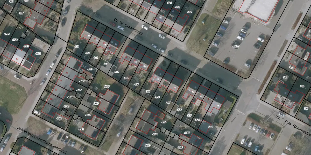Dr. W. Dreesstraat 13 is gelegen op kadastraal perceel SNE00E309. Deze kadastrale aanduiding is uniek en wordt gebruikt door het Kadaster om eigendomsrechten en andere zakelijke rechten vast te leggen. Het perceel maakt onderdeel uit van de kadastrale gemeente Sneek.