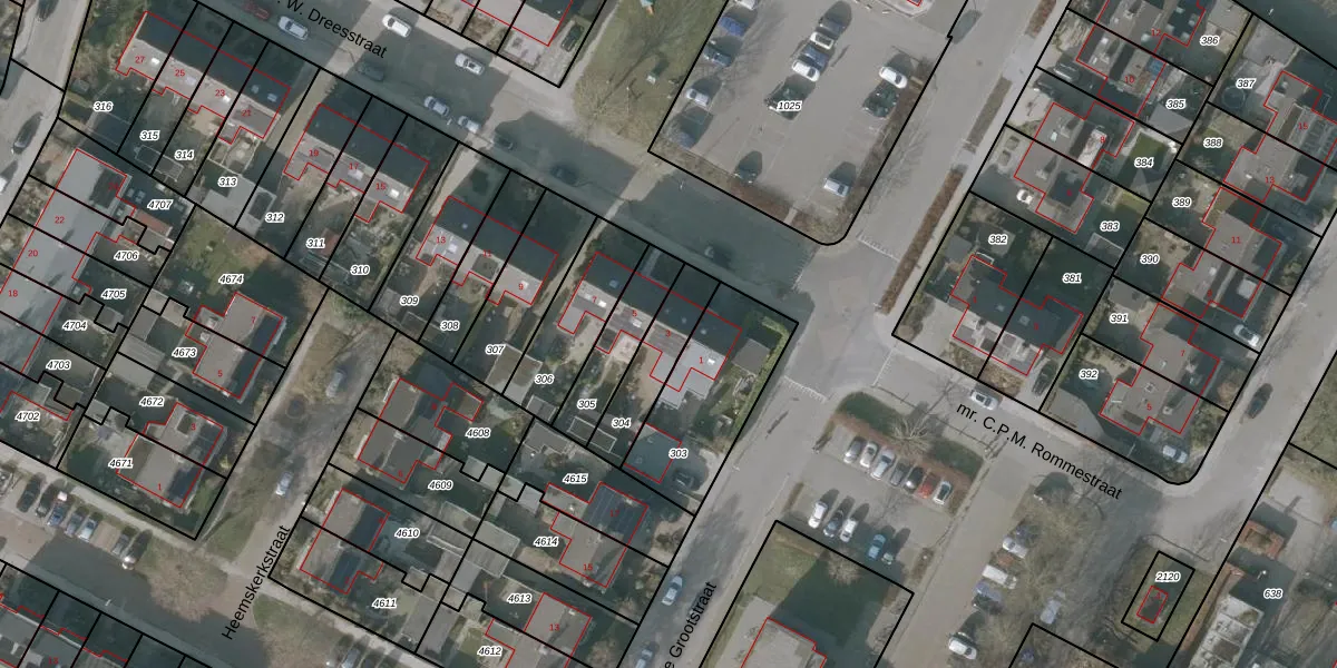 Gebruik de zoekbalk of klik op een perceel voor informatie over de adressen binnen dit perceel.