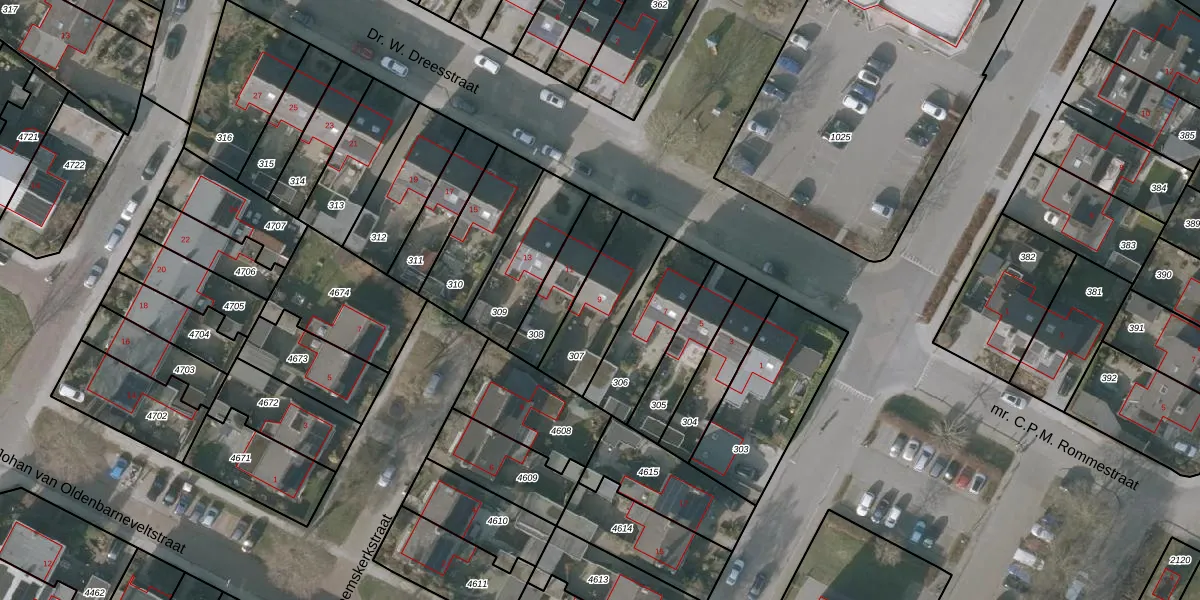 Dr. W. Dreesstraat 9 is gelegen op kadastraal perceel SNE00E307. Deze kadastrale aanduiding is uniek en wordt gebruikt door het Kadaster om eigendomsrechten en andere zakelijke rechten vast te leggen. Het perceel maakt onderdeel uit van de kadastrale gemeente Sneek.
