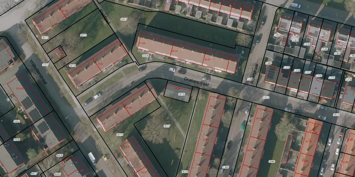 Drakenstraat 18 is gelegen op kadastraal perceel SNE00D3076. Deze kadastrale aanduiding is uniek en wordt gebruikt door het Kadaster om eigendomsrechten en andere zakelijke rechten vast te leggen. Het perceel maakt onderdeel uit van de kadastrale gemeente Sneek.