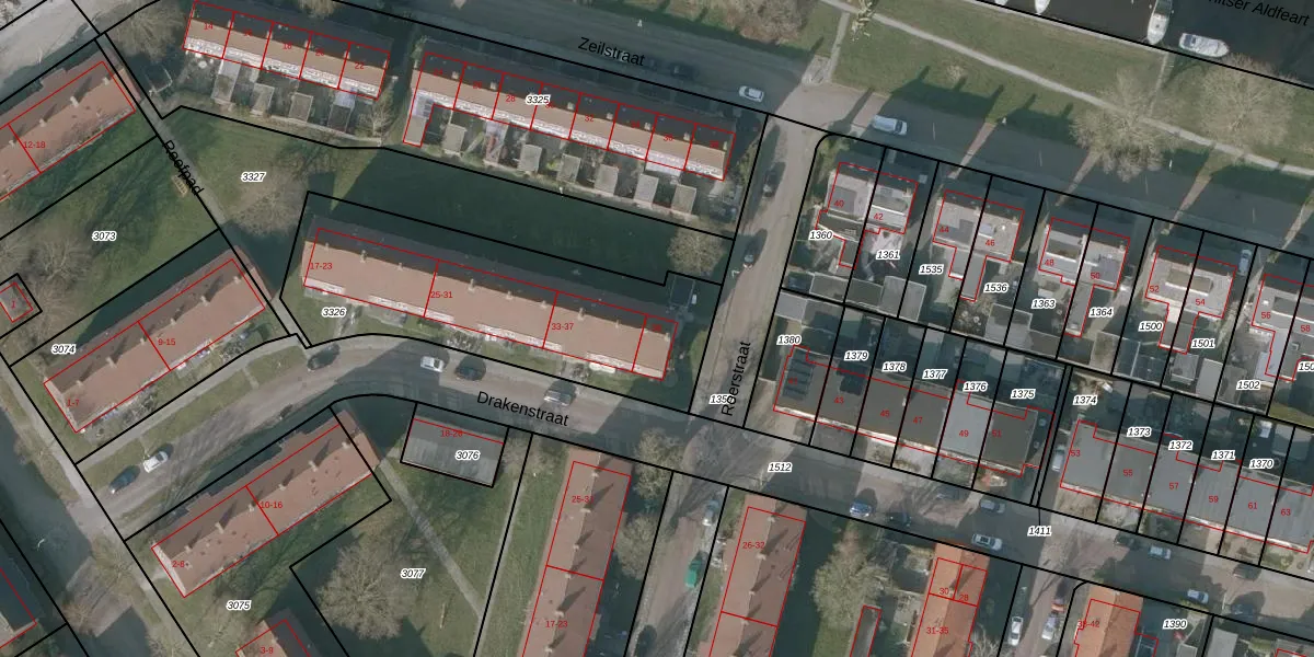 Drakenstraat 39 is gelegen op kadastraal perceel SNE00D3326. Deze kadastrale aanduiding is uniek en wordt gebruikt door het Kadaster om eigendomsrechten en andere zakelijke rechten vast te leggen. Het perceel maakt onderdeel uit van de kadastrale gemeente Sneek.
