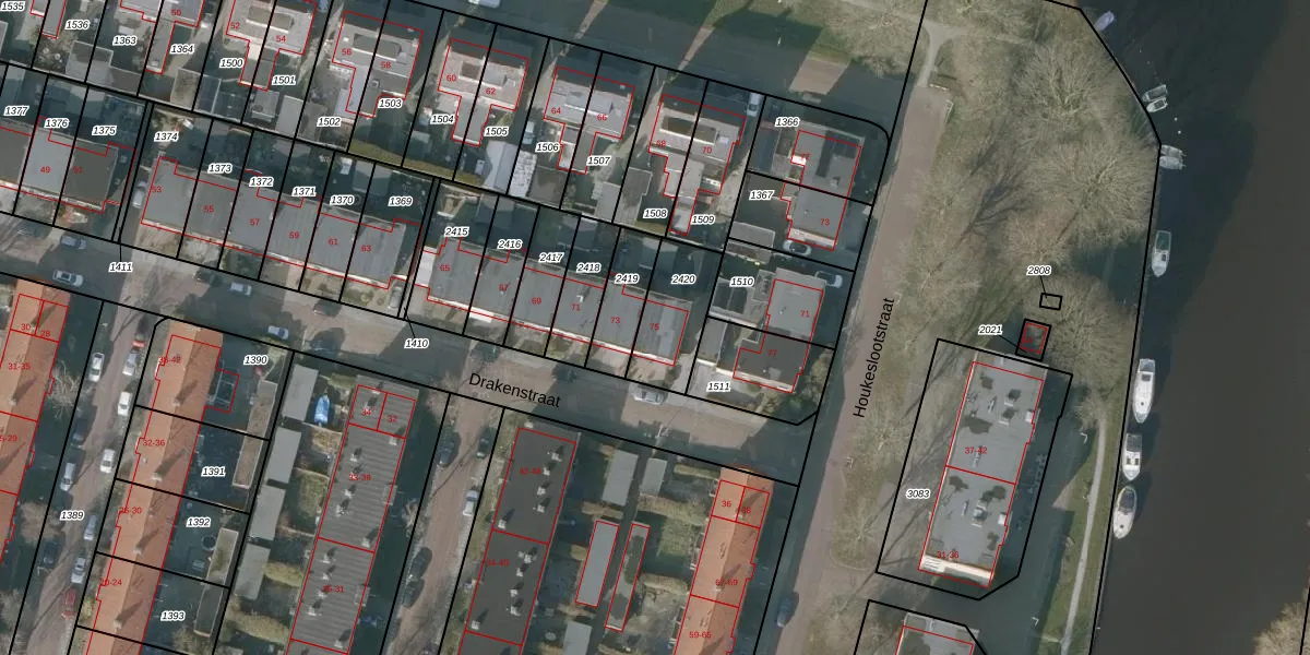 Gebruik de zoekbalk of klik op een perceel voor informatie over de adressen binnen dit perceel.