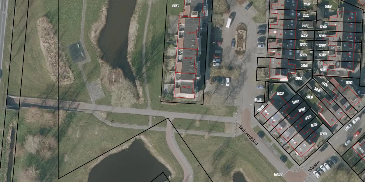 Duizendblad 162 is gelegen op kadastraal perceel SNE00C5420. Deze kadastrale aanduiding is uniek en wordt gebruikt door het Kadaster om eigendomsrechten en andere zakelijke rechten vast te leggen. Het perceel maakt onderdeel uit van de kadastrale gemeente Sneek.