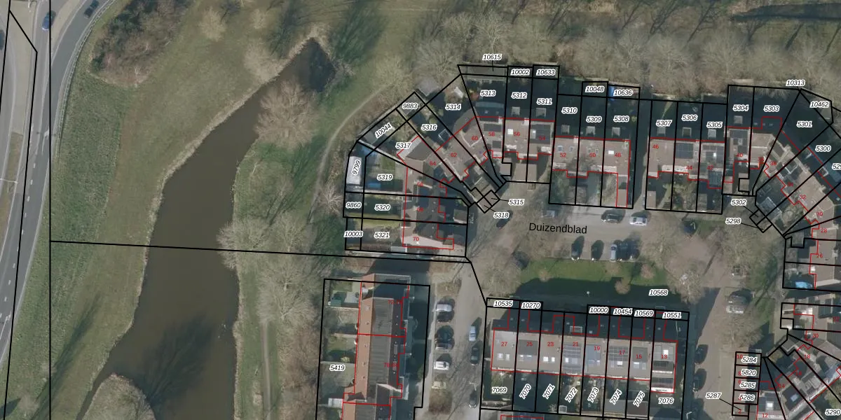 Duizendblad 68 is gelegen op kadastraal perceel SNE00C5320. Deze kadastrale aanduiding is uniek en wordt gebruikt door het Kadaster om eigendomsrechten en andere zakelijke rechten vast te leggen. Het perceel maakt onderdeel uit van de kadastrale gemeente Sneek.