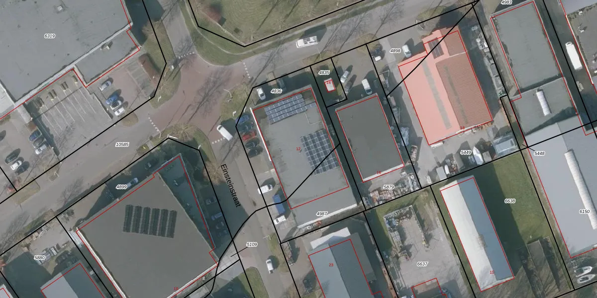Edisonstraat 12 is gelegen op kadastraal perceel SNE00C4836. Deze kadastrale aanduiding is uniek en wordt gebruikt door het Kadaster om eigendomsrechten en andere zakelijke rechten vast te leggen. Het perceel maakt onderdeel uit van de kadastrale gemeente Sneek.