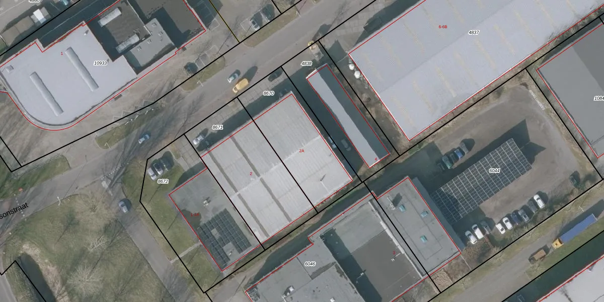 Het perceel waarop Edisonstraat 2-A staat heeft een oppervlakte van 835 m². Dit is een groot perceel. De perceeloppervlakte wordt geregistreerd door het Kadaster. Gedetailleerde informatie over de maten van dit perceel kunt u vinden in het rapport Kadastrale kaart met maatvoering van Edisonstraat 2-A.