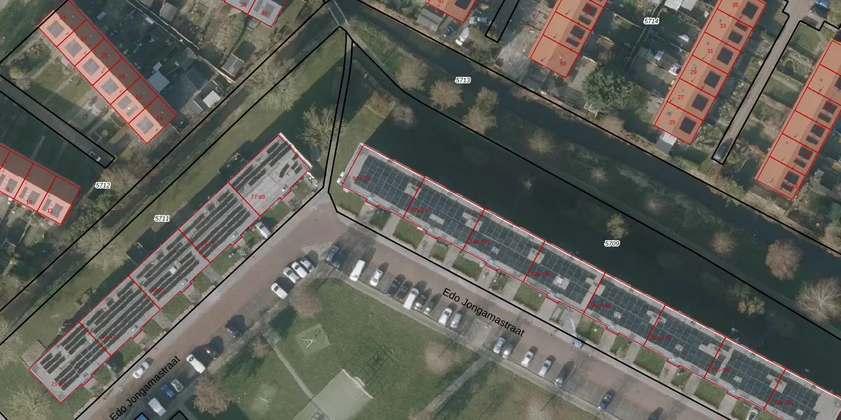 Edo Jongamastraat 105 is gelegen op kadastraal perceel SNE00A5709. Deze kadastrale aanduiding is uniek en wordt gebruikt door het Kadaster om eigendomsrechten en andere zakelijke rechten vast te leggen. Het perceel maakt onderdeel uit van de kadastrale gemeente Sneek.