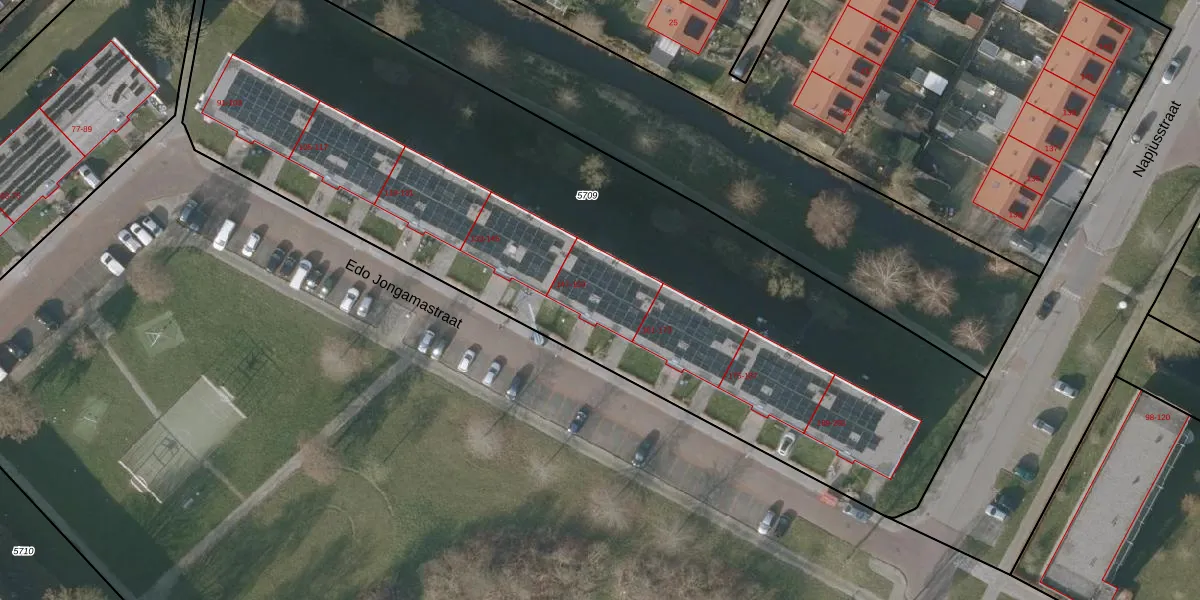 Edo Jongamastraat 151 is gelegen op kadastraal perceel SNE00A5709. Deze kadastrale aanduiding is uniek en wordt gebruikt door het Kadaster om eigendomsrechten en andere zakelijke rechten vast te leggen. Het perceel maakt onderdeel uit van de kadastrale gemeente Sneek.