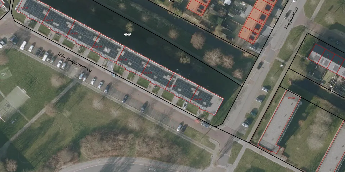 Edo Jongamastraat 175 is gelegen op kadastraal perceel SNE00A5709. Deze kadastrale aanduiding is uniek en wordt gebruikt door het Kadaster om eigendomsrechten en andere zakelijke rechten vast te leggen. Het perceel maakt onderdeel uit van de kadastrale gemeente Sneek.