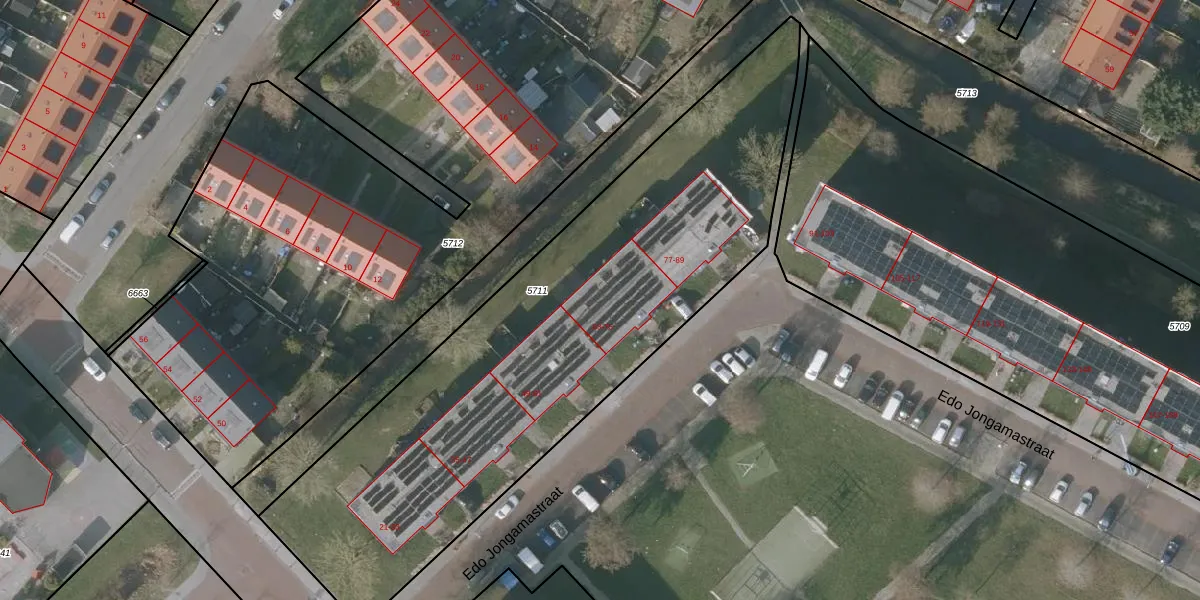 Edo Jongamastraat 73 is gelegen op kadastraal perceel SNE00A5711. Deze kadastrale aanduiding is uniek en wordt gebruikt door het Kadaster om eigendomsrechten en andere zakelijke rechten vast te leggen. Het perceel maakt onderdeel uit van de kadastrale gemeente Sneek.