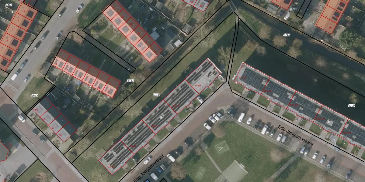 Edo Jongamastraat 75 is gelegen op kadastraal perceel SNE00A5711. Deze kadastrale aanduiding is uniek en wordt gebruikt door het Kadaster om eigendomsrechten en andere zakelijke rechten vast te leggen. Het perceel maakt onderdeel uit van de kadastrale gemeente Sneek.