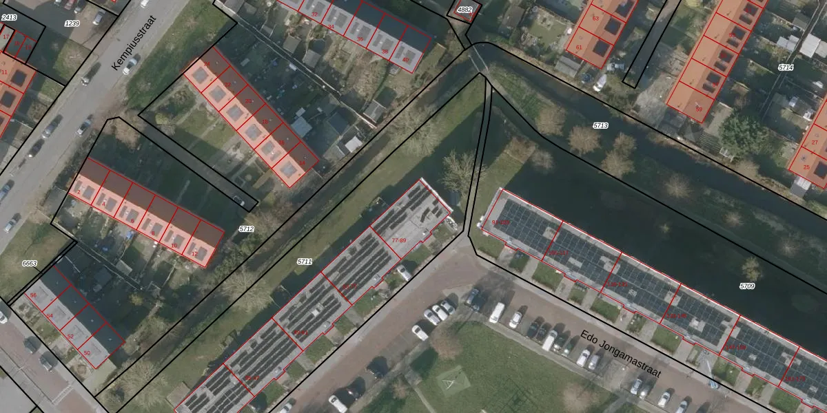 Edo Jongamastraat 89 is gelegen op kadastraal perceel SNE00A5711. Deze kadastrale aanduiding is uniek en wordt gebruikt door het Kadaster om eigendomsrechten en andere zakelijke rechten vast te leggen. Het perceel maakt onderdeel uit van de kadastrale gemeente Sneek.