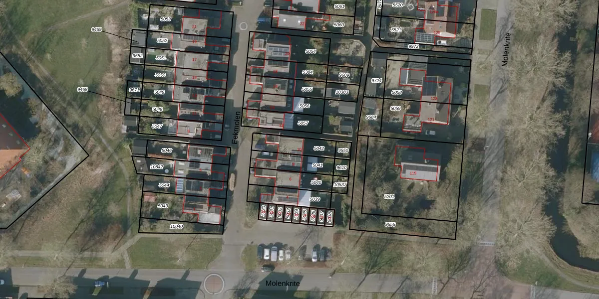 Het perceel waarop Eekmolen 10 staat heeft een oppervlakte van 162 m². Dit is een middelgroot perceel. De perceeloppervlakte wordt geregistreerd door het Kadaster. Gedetailleerde informatie over de maten van dit perceel kunt u vinden in het rapport Kadastrale kaart met maatvoering van Eekmolen 10.