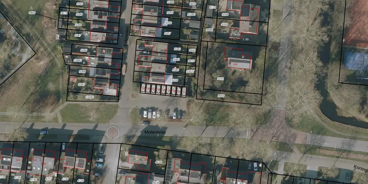 Het perceel waarop Eekmolen 2-i staat heeft een oppervlakte van 16 m². Dit is een klein perceel. De perceeloppervlakte wordt geregistreerd door het Kadaster. Gedetailleerde informatie over de maten van dit perceel kunt u vinden in het rapport Kadastrale kaart met maatvoering van Eekmolen 2-i.