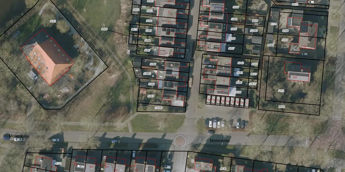 Het perceel waarop Eekmolen 3 staat heeft een oppervlakte van 159 m². Dit is een middelgroot perceel. De perceeloppervlakte wordt geregistreerd door het Kadaster. Gedetailleerde informatie over de maten van dit perceel kunt u vinden in het rapport Kadastrale kaart met maatvoering van Eekmolen 3.