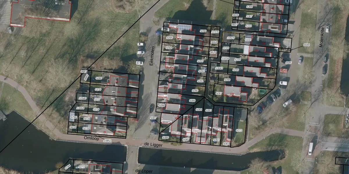 Het perceel waarop Eekmolen 40 staat heeft een oppervlakte van 163 m². Dit is een middelgroot perceel. De perceeloppervlakte wordt geregistreerd door het Kadaster. Gedetailleerde informatie over de maten van dit perceel kunt u vinden in het rapport Kadastrale kaart met maatvoering van Eekmolen 40.
