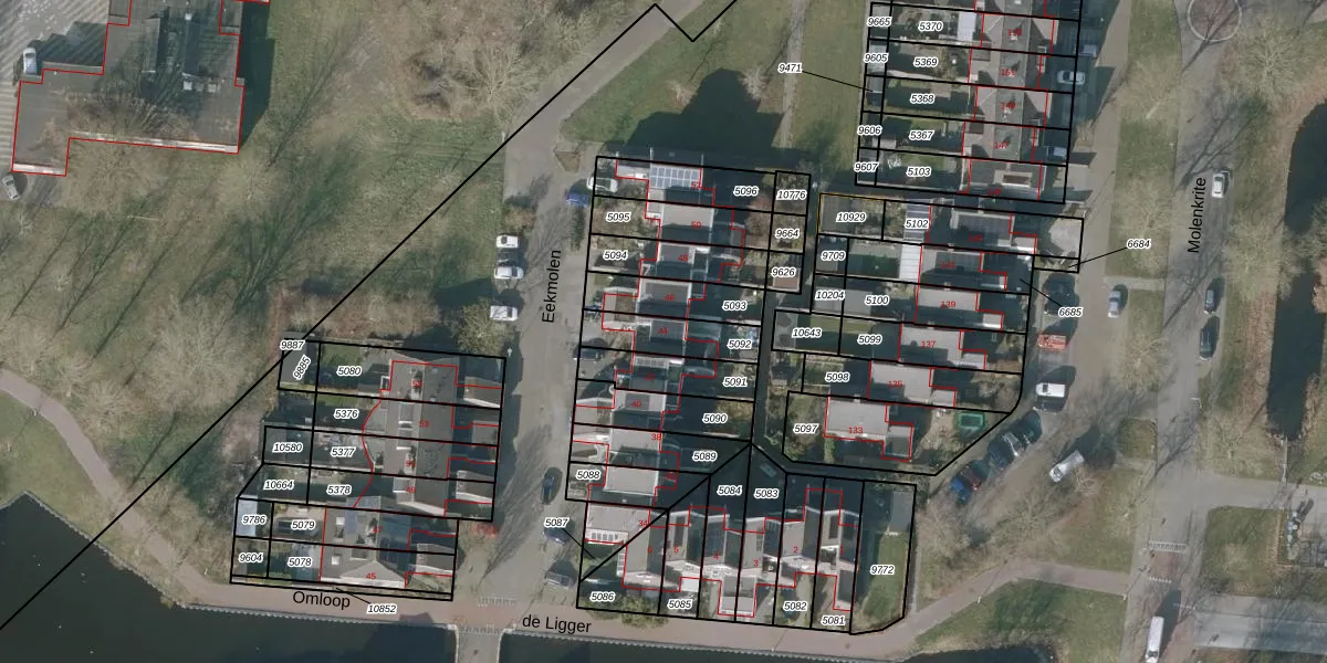 Het perceel waarop Eekmolen 44 staat heeft een oppervlakte van 153 m². Dit is een middelgroot perceel. De perceeloppervlakte wordt geregistreerd door het Kadaster. Gedetailleerde informatie over de maten van dit perceel kunt u vinden in het rapport Kadastrale kaart met maatvoering van Eekmolen 44.