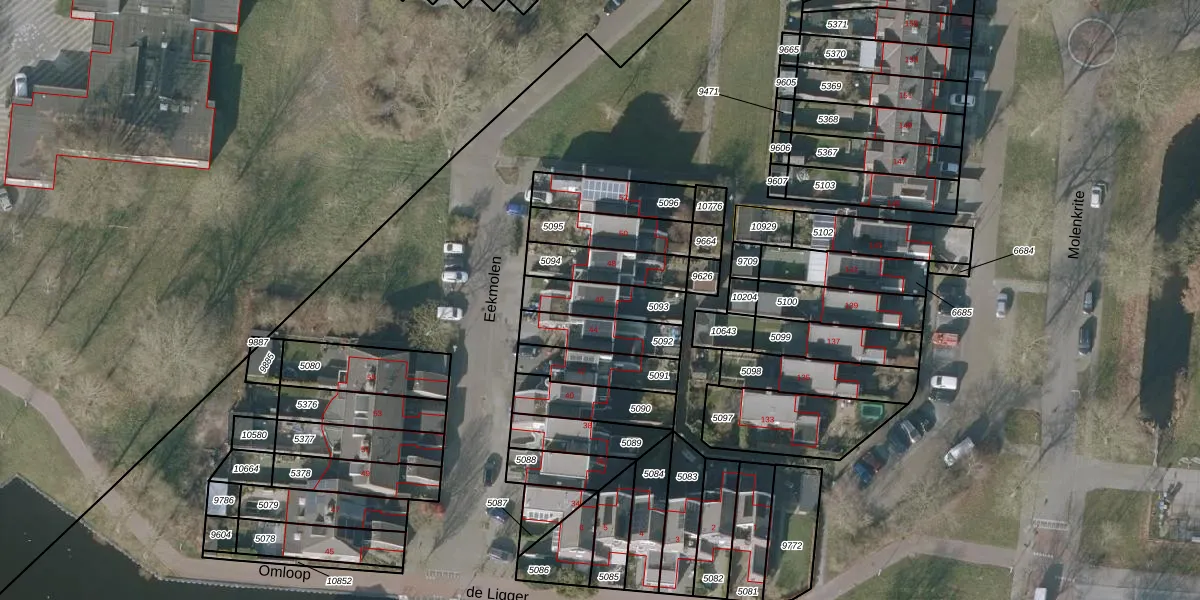 Het perceel waarop Eekmolen 46 staat heeft een oppervlakte van 155 m². Dit is een middelgroot perceel. De perceeloppervlakte wordt geregistreerd door het Kadaster. Gedetailleerde informatie over de maten van dit perceel kunt u vinden in het rapport Kadastrale kaart met maatvoering van Eekmolen 46.