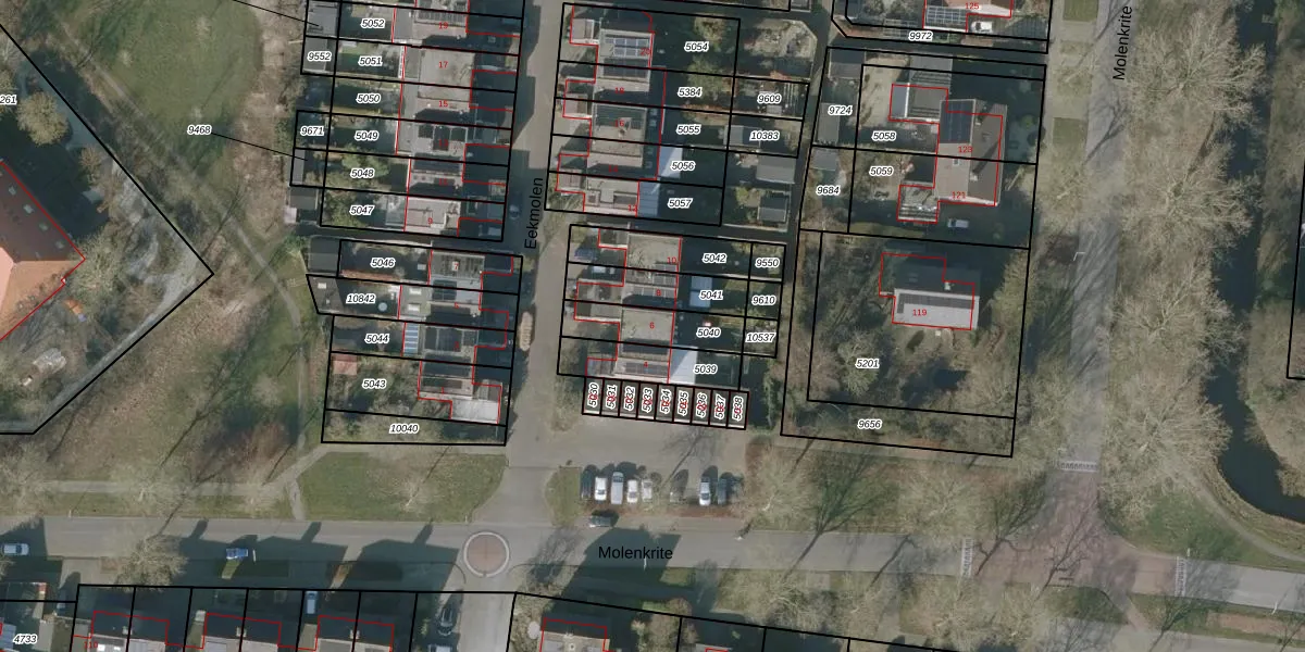 Gebruik de zoekbalk of klik op een perceel voor informatie over de adressen binnen dit perceel.