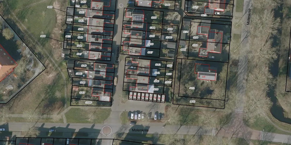 Het perceel waarop Eekmolen 8 staat heeft een oppervlakte van 160 m². Dit is een middelgroot perceel. De perceeloppervlakte wordt geregistreerd door het Kadaster. Gedetailleerde informatie over de maten van dit perceel kunt u vinden in het rapport Kadastrale kaart met maatvoering van Eekmolen 8.