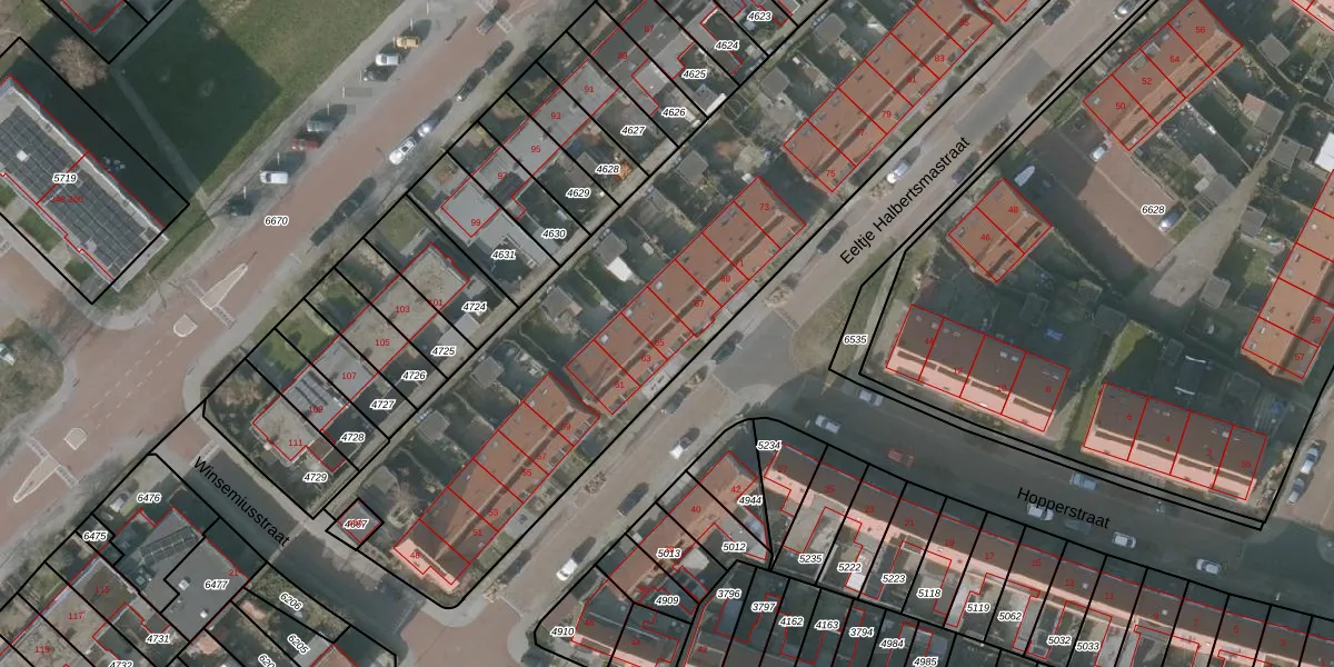 Het perceel waarop Eeltje Halbertsmastraat 65 staat heeft een oppervlakte van 3933 m². Dit is een zeer groot perceel. De perceeloppervlakte wordt geregistreerd door het Kadaster. Gedetailleerde informatie over de maten van dit perceel kunt u vinden in het rapport Kadastrale kaart met maatvoering van Eeltje Halbertsmastraat 65.