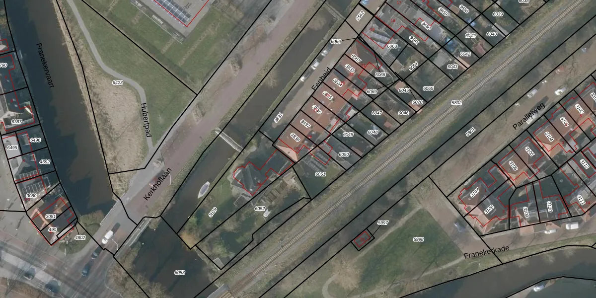 Het perceel waarop het adres ligt is SNE00-A-3838. De afkorting 'SNE00' staat voor kadastrale gemeente Sneek. De gemiddelde perceelgrootte in Sneek is 2093,37 m². Dit perceel is kleiner: de perceeloppervlakte bedraagt 101 m². Het grootste perceel in de kadastrale gemeente is 61,3 ha. Het kleinste perceel heeft een oppervlakte van 0 m². Er zijn geen andere adressen aanwezig op het perceel. De laatste wijziging in het de Basisregistratie Kadaster (BRK) was op 19-05-2005.