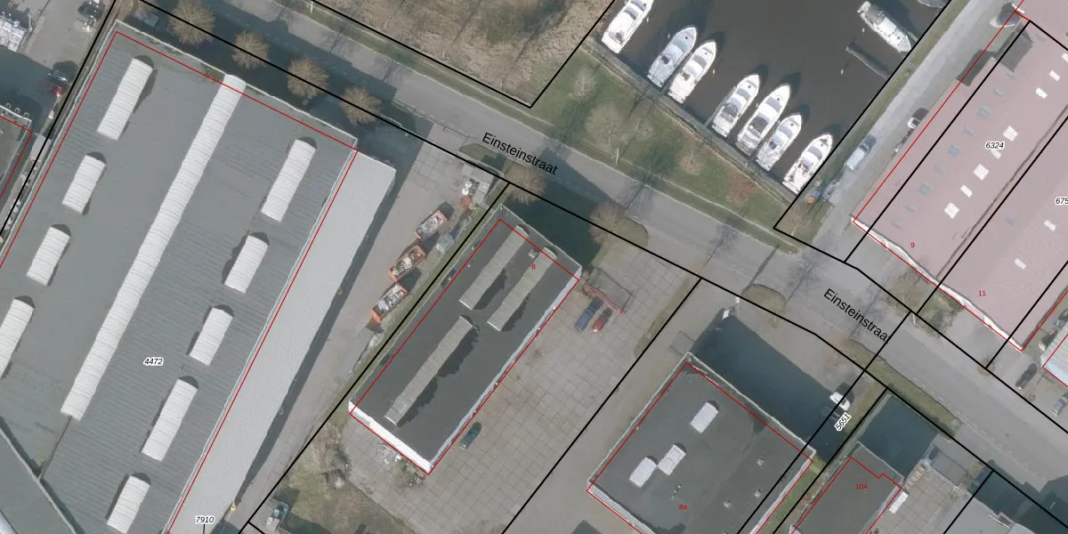Het perceel waarop Einsteinstraat 8 staat heeft een oppervlakte van 3666 m². Dit is een zeer groot perceel. De perceeloppervlakte wordt geregistreerd door het Kadaster. Gedetailleerde informatie over de maten van dit perceel kunt u vinden in het rapport Kadastrale kaart met maatvoering van Einsteinstraat 8.