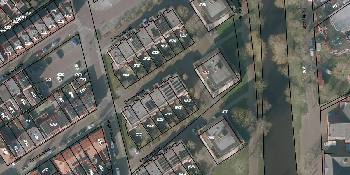 Emmastraat 34 is gelegen op kadastraal perceel SNE00A5886. Deze kadastrale aanduiding is uniek en wordt gebruikt door het Kadaster om eigendomsrechten en andere zakelijke rechten vast te leggen. Het perceel maakt onderdeel uit van de kadastrale gemeente Sneek.