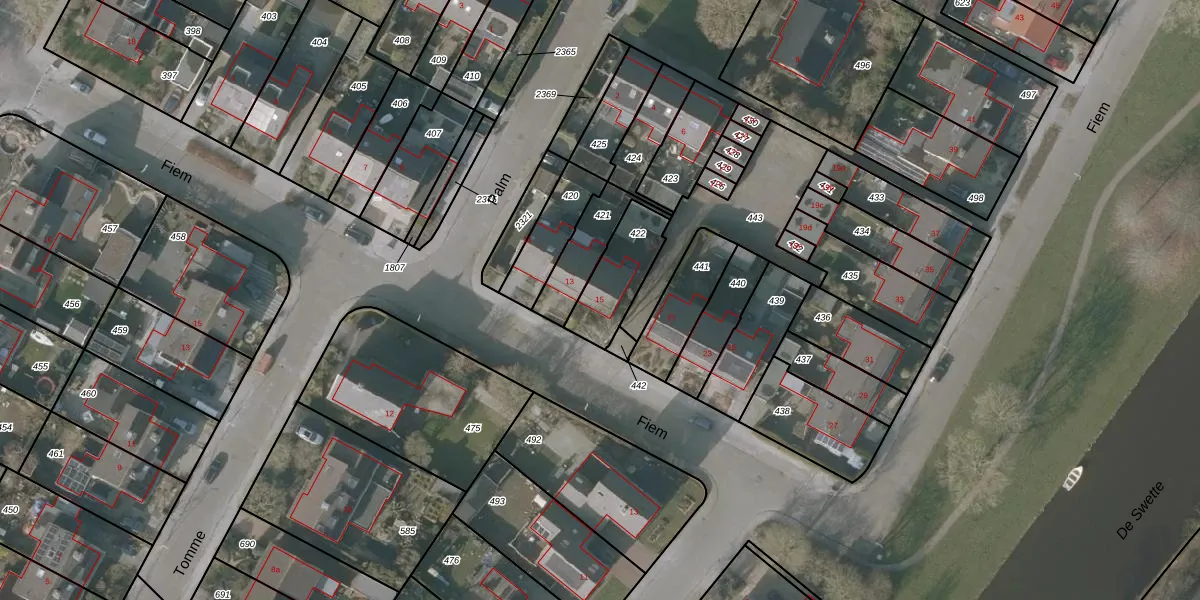 Fiem 15 is gelegen op kadastraal perceel SNE00E422. Deze kadastrale aanduiding is uniek en wordt gebruikt door het Kadaster om eigendomsrechten en andere zakelijke rechten vast te leggen. Het perceel maakt onderdeel uit van de kadastrale gemeente Sneek.