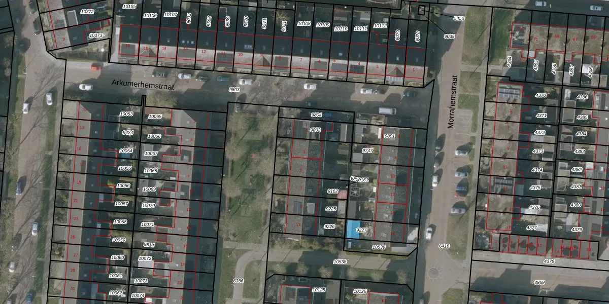 Het perceel waarop het adres ligt is SNE00-C-9800. De afkorting 'SNE00' staat voor kadastrale gemeente Sneek. Het perceel is 765 m² groot. Dat is kleiner dan de gemiddelde perceeloppervlakte in Sneek, dat op 2093,37 m² ligt. Het kleinste perceel in de kadastrale gemeente is 0 m² groot. De grootste perceeloppervlakte is 61,3 ha. Op het perceel zijn 5 adressen aanwezig. De laatste wijziging in het de Basisregistratie Kadaster (BRK) was op 10-05-2016.