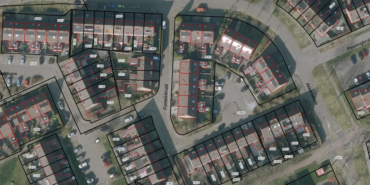 Fonteinkruid 5 is gelegen op kadastraal perceel SNE00C6050. Deze kadastrale aanduiding is uniek en wordt gebruikt door het Kadaster om eigendomsrechten en andere zakelijke rechten vast te leggen. Het perceel maakt onderdeel uit van de kadastrale gemeente Sneek.