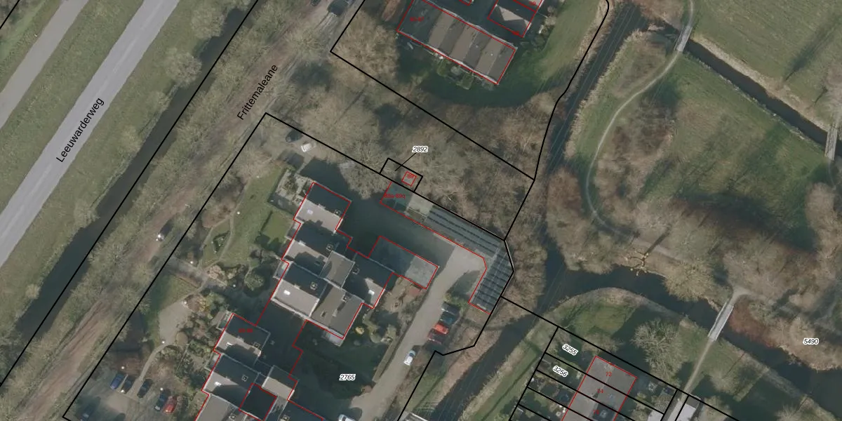 Het perceel waarop Frittemaleane 89-d staat heeft een oppervlakte van 5941 m². Dit is een zeer groot perceel. De perceeloppervlakte wordt geregistreerd door het Kadaster. Gedetailleerde informatie over de maten van dit perceel kunt u vinden in het rapport Kadastrale kaart met maatvoering van Frittemaleane 89-d.