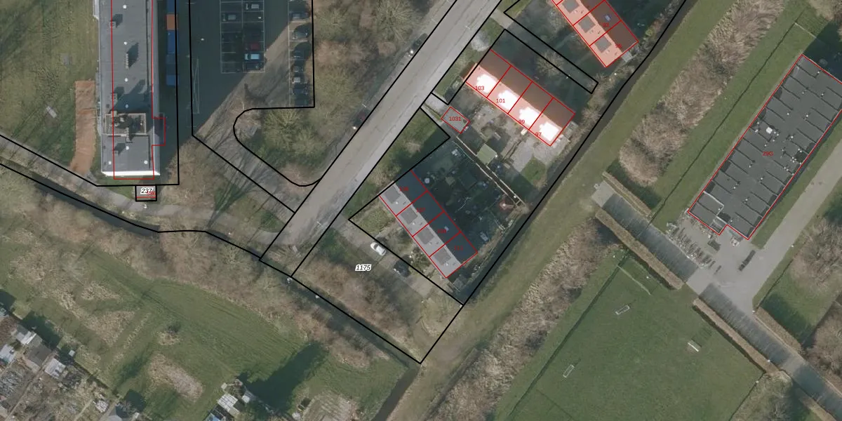 Het perceel waarop het adres ligt is SNE00-E-1173. De afkorting 'SNE00' staat voor kadastrale gemeente Sneek. De oppervlakte van het perceel is 3637 m². Dat is groter dan gemiddeld in Sneek, waar de gemiddelde perceeloppervlakte op 2093,37 m² ligt. De grootste perceeloppervlakte in de kadastrale gemeente is 61,3 ha. De kleinste oppervlakte bedraagt 0 m². Op het perceel zijn 17 adressen aanwezig. De huidige grenzen van het perceel zijn digitaal in de Basisregistratie Kadaster (BRK) geregistreerd op 24-06-2002.