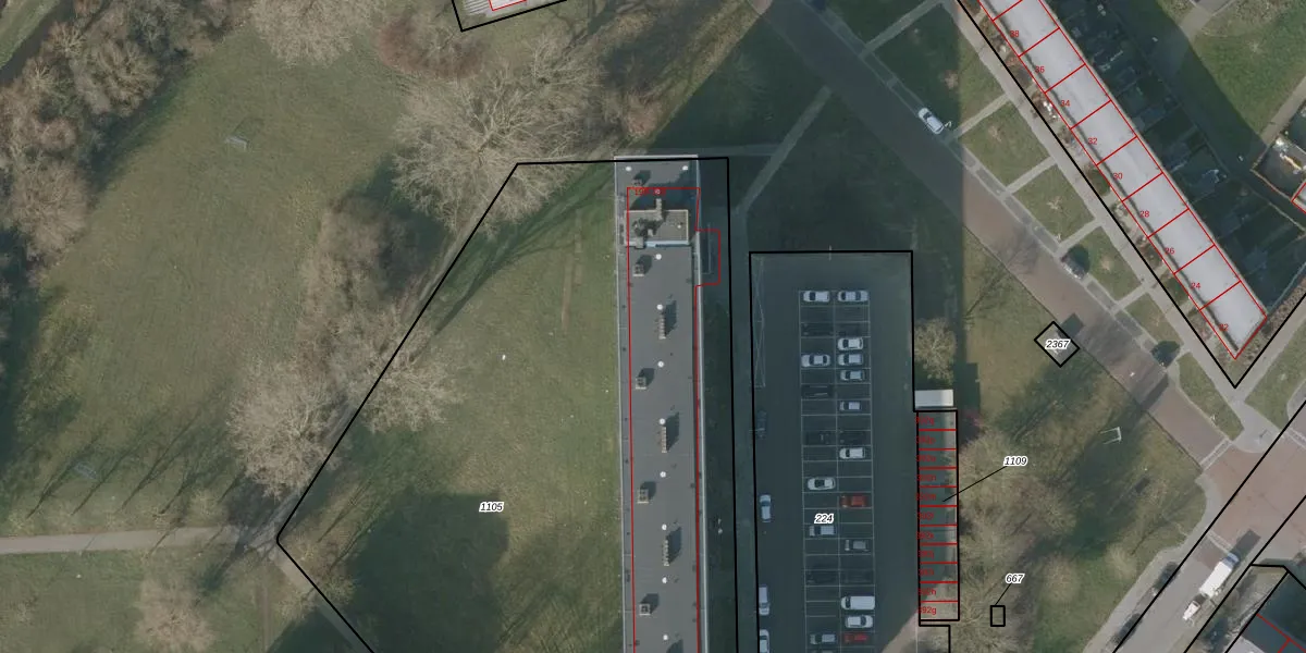Het perceel waarop het adres ligt is SNE00-E-1105. De afkorting 'SNE00' staat voor kadastrale gemeente Sneek. Het perceel is met 5440 m² relatief groot. Het gemiddelde ligt in de kadastrale gemeente Sneek op 2095,69 m². Het grootste perceel in de kadastrale gemeente is 61,3 ha. Het kleinste perceel heeft een oppervlakte van 0 m². Op het perceel liggen in totaal 96 adressen. In de Basisregistratie Kadaster (BRK) werden de grenzen van het perceel geregistreerd op 07-03-2003.
