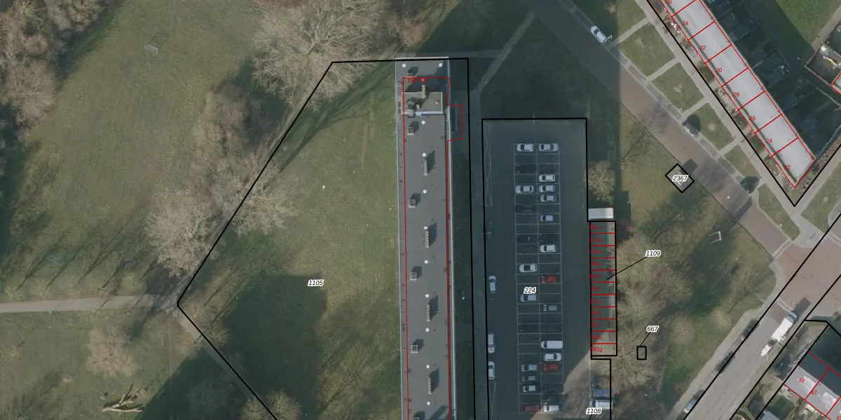Het perceel waarop het adres ligt is SNE00-E-1105. De afkorting 'SNE00' staat voor kadastrale gemeente Sneek. Het perceel is met 5440 m² relatief groot. Het gemiddelde ligt in de kadastrale gemeente Sneek op 2095,56 m². Het grootste perceel in de kadastrale gemeente is 61,3 ha. Het kleinste perceel heeft een oppervlakte van 0 m². Op het perceel liggen in totaal 96 adressen. In de Basisregistratie Kadaster (BRK) werden de grenzen van het perceel geregistreerd op 07-03-2003.