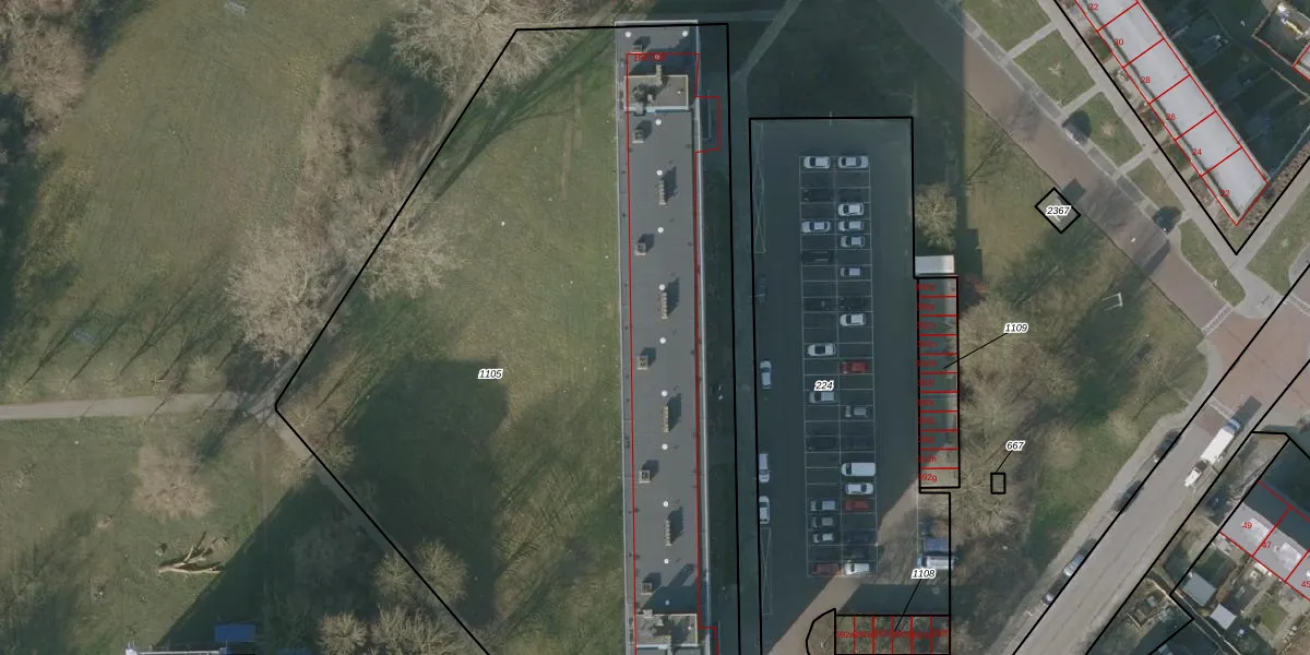 Het perceel waarop het adres ligt is SNE00-E-1105. De afkorting 'SNE00' staat voor kadastrale gemeente Sneek. Het perceel is met 5440 m² relatief groot. Het gemiddelde ligt in de kadastrale gemeente Sneek op 2095,56 m². Het grootste perceel in de kadastrale gemeente is 61,3 ha. Het kleinste perceel heeft een oppervlakte van 0 m². Er zijn 96 adressen aanwezig op het perceel. In de Basisregistratie Kadaster (BRK) werden de grenzen van het perceel geregistreerd op 07-03-2003.