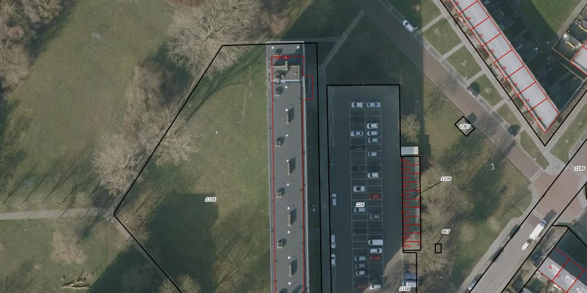 Het perceel waarop het adres ligt is SNE00-E-1105. De afkorting 'SNE00' staat voor kadastrale gemeente Sneek. Het perceel is met 5440 m² relatief groot. Het gemiddelde ligt in de kadastrale gemeente Sneek op 2095,56 m². Het grootste perceel in de kadastrale gemeente is 61,3 ha. Het kleinste perceel heeft een oppervlakte van 0 m². Op het perceel liggen in totaal 96 adressen. De huidige grenzen van het perceel zijn digitaal in de Basisregistratie Kadaster (BRK) geregistreerd op 07-03-2003.
