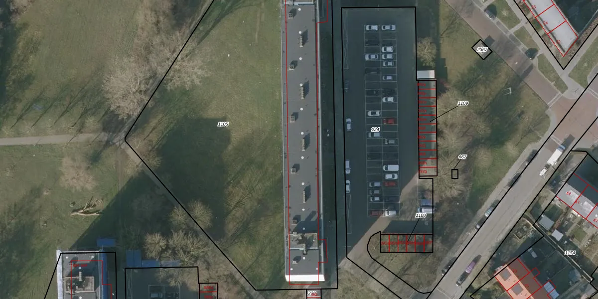 Het perceel waarop het adres ligt is SNE00-E-1105. De afkorting 'SNE00' staat voor kadastrale gemeente Sneek. Het perceel is met 5440 m² relatief groot. Het gemiddelde ligt in de kadastrale gemeente Sneek op 2095,17 m². De grootste perceeloppervlakte in de kadastrale gemeente is 61,3 ha. De kleinste oppervlakte bedraagt 0 m². Er zijn 96 adressen aanwezig op het perceel. In de Basisregistratie Kadaster (BRK) werden de grenzen van het perceel geregistreerd op 07-03-2003.