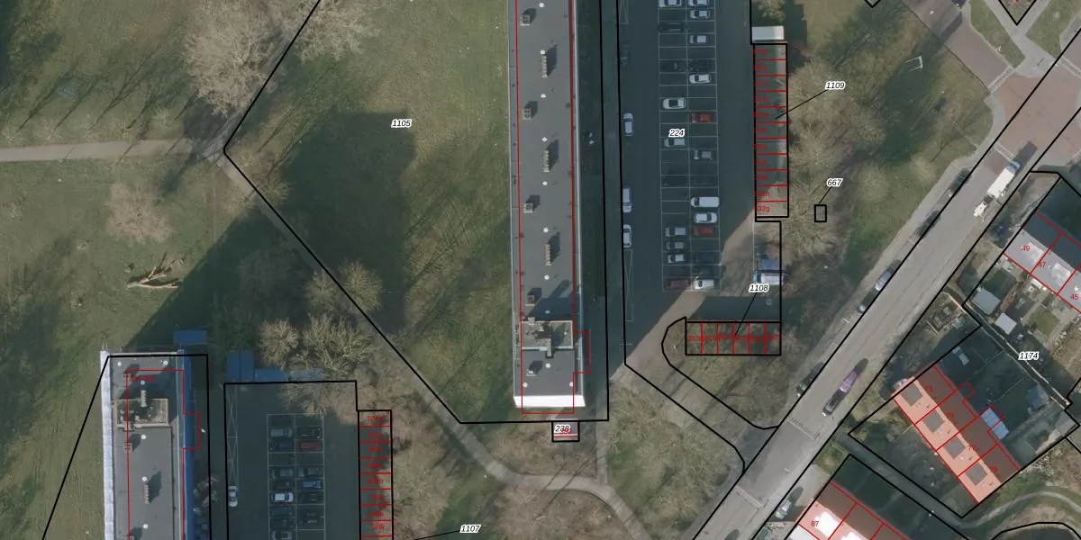 Het perceel waarop het adres ligt is SNE00-E-1105. De afkorting 'SNE00' staat voor kadastrale gemeente Sneek. Het perceel is met 5440 m² relatief groot. Het gemiddelde ligt in de kadastrale gemeente Sneek op 2093,37 m². De grootste perceeloppervlakte in de kadastrale gemeente is 61,3 ha. De kleinste oppervlakte bedraagt 0 m². Er zijn 96 adressen aanwezig op het perceel. De laatste wijziging in het de Basisregistratie Kadaster (BRK) was op 07-03-2003.