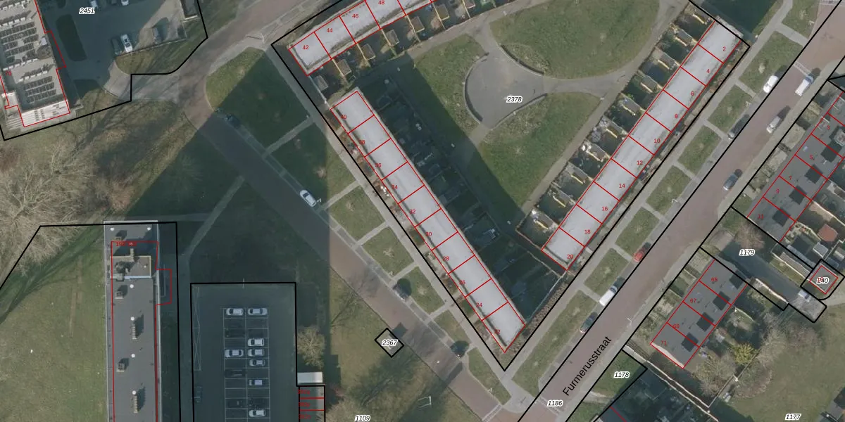Het perceel waarop Furmerusstraat 32 staat heeft een oppervlakte van 6641 m². Dit is een zeer groot perceel. De perceeloppervlakte wordt geregistreerd door het Kadaster. Gedetailleerde informatie over de maten van dit perceel kunt u vinden in het rapport Kadastrale kaart met maatvoering van Furmerusstraat 32.