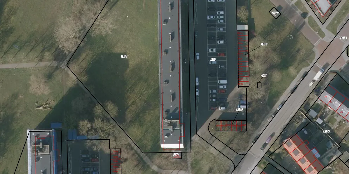 Het perceel waarop het adres ligt is SNE00-E-1105. De afkorting 'SNE00' staat voor kadastrale gemeente Sneek. Het perceel is met 5440 m² relatief groot. Het gemiddelde ligt in de kadastrale gemeente Sneek op 2095,69 m². Het grootste perceel in de kadastrale gemeente is 61,3 ha. Het kleinste perceel heeft een oppervlakte van 0 m². Op het perceel liggen in totaal 96 adressen. De laatste wijziging in het de Basisregistratie Kadaster (BRK) was op 07-03-2003.