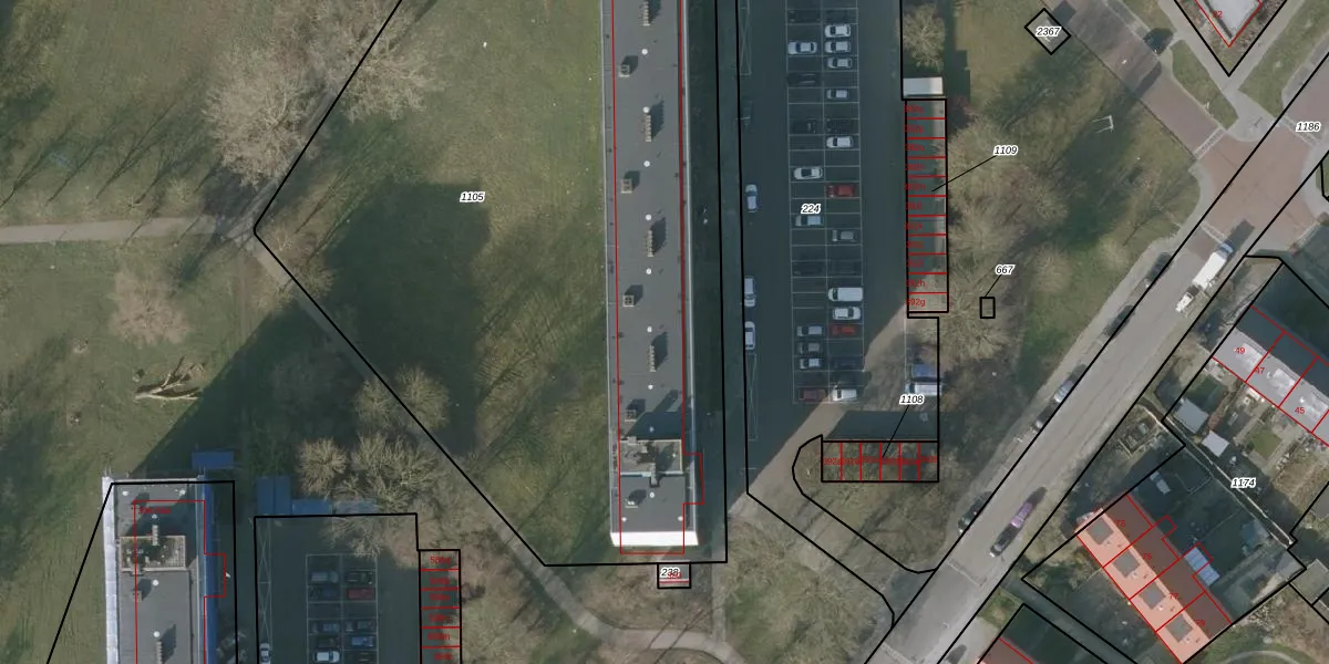 Het perceel waarop het adres ligt is SNE00-E-1105. De afkorting 'SNE00' staat voor kadastrale gemeente Sneek. Het perceel is met 5440 m² relatief groot. Het gemiddelde ligt in de kadastrale gemeente Sneek op 2095,69 m². Het grootste perceel in de kadastrale gemeente is 61,3 ha. Het kleinste perceel heeft een oppervlakte van 0 m². Op het perceel liggen in totaal 96 adressen. In de Basisregistratie Kadaster (BRK) werden de grenzen van het perceel geregistreerd op 07-03-2003.