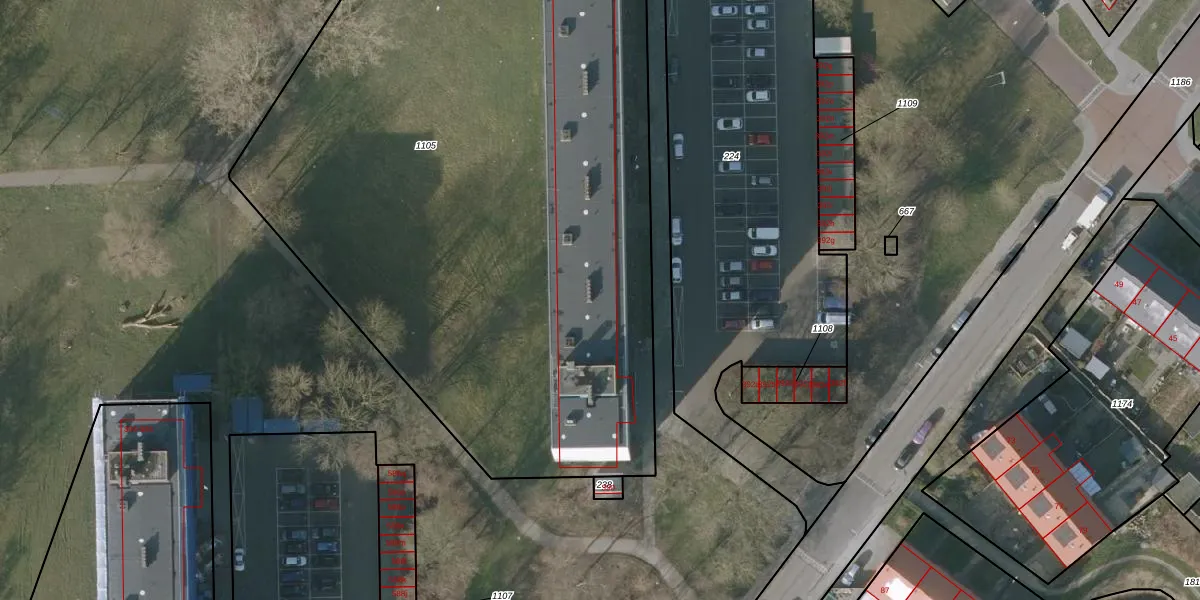 Het perceel waarop het adres ligt is SNE00-E-1105. De afkorting 'SNE00' staat voor kadastrale gemeente Sneek. Het perceel is met 5440 m² relatief groot. Het gemiddelde ligt in de kadastrale gemeente Sneek op 2095,56 m². Het grootste perceel in de kadastrale gemeente is 61,3 ha. Het kleinste perceel heeft een oppervlakte van 0 m². Op het perceel liggen in totaal 96 adressen. De laatste wijziging in het de Basisregistratie Kadaster (BRK) was op 07-03-2003.