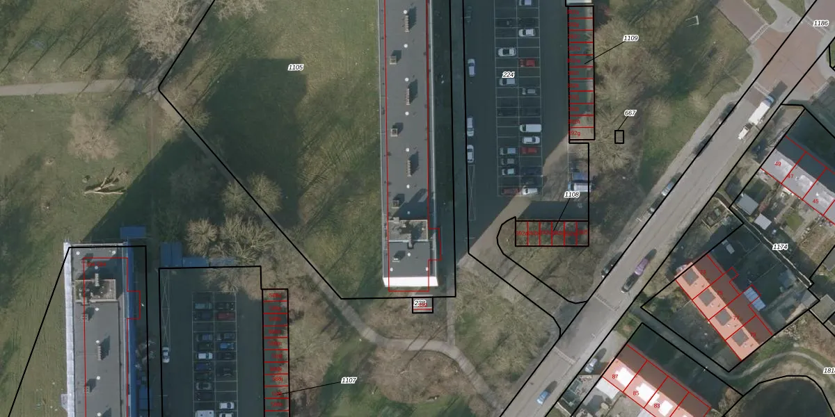 Het perceel waarop het adres ligt is SNE00-E-1105. De afkorting 'SNE00' staat voor kadastrale gemeente Sneek. Het perceel is met 5440 m² relatief groot. Het gemiddelde ligt in de kadastrale gemeente Sneek op 2095,56 m². Het grootste perceel in de kadastrale gemeente is 61,3 ha. Het kleinste perceel heeft een oppervlakte van 0 m². Er zijn 96 adressen aanwezig op het perceel. De laatste wijziging in het de Basisregistratie Kadaster (BRK) was op 07-03-2003.