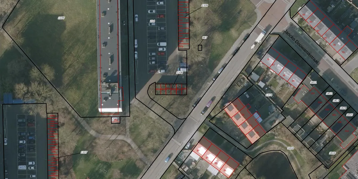 Het perceel waarop het adres ligt is SNE00-E-1108. De afkorting 'SNE00' staat voor kadastrale gemeente Sneek. De gemiddelde perceelgrootte in Sneek is 2093,37 m². Dit perceel is kleiner: de perceeloppervlakte bedraagt 106 m². De grootste perceeloppervlakte in de kadastrale gemeente is 61,3 ha. De kleinste oppervlakte bedraagt 0 m². Op het perceel zijn 6 adressen aanwezig. De huidige grenzen van het perceel zijn digitaal in de Basisregistratie Kadaster (BRK) geregistreerd op 07-03-2003.