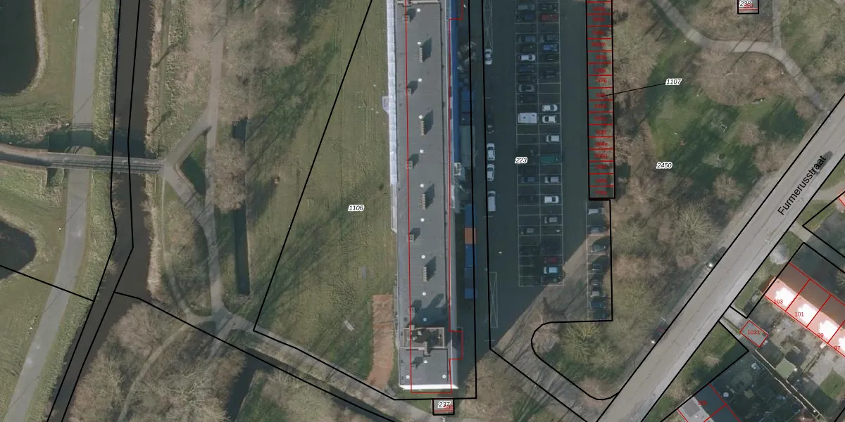 Het perceel waarop Furmerusstraat 460 staat heeft een oppervlakte van 3790 m². Dit is een zeer groot perceel. De perceeloppervlakte wordt geregistreerd door het Kadaster. Gedetailleerde informatie over de maten van dit perceel kunt u vinden in het rapport Kadastrale kaart met maatvoering van Furmerusstraat 460.