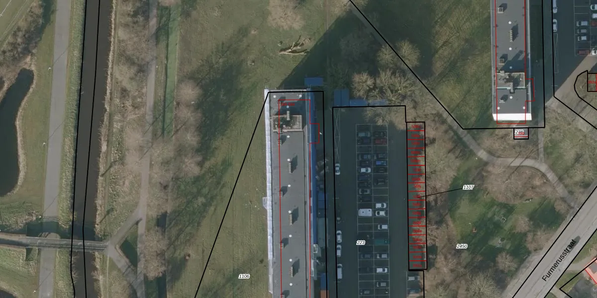 Het perceel waarop Furmerusstraat 462 staat heeft een oppervlakte van 3790 m². Dit is een zeer groot perceel. De perceeloppervlakte wordt geregistreerd door het Kadaster. Gedetailleerde informatie over de maten van dit perceel kunt u vinden in het rapport Kadastrale kaart met maatvoering van Furmerusstraat 462.