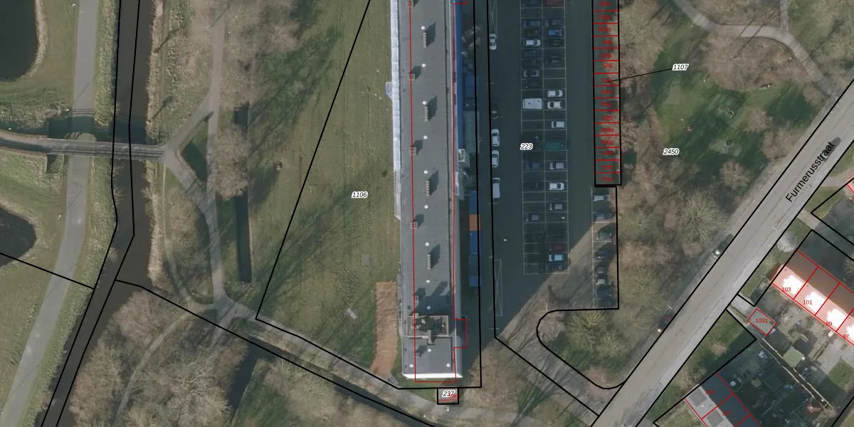Het perceel waarop Furmerusstraat 480 staat heeft een oppervlakte van 3790 m². Dit is een zeer groot perceel. De perceeloppervlakte wordt geregistreerd door het Kadaster. Gedetailleerde informatie over de maten van dit perceel kunt u vinden in het rapport Kadastrale kaart met maatvoering van Furmerusstraat 480.