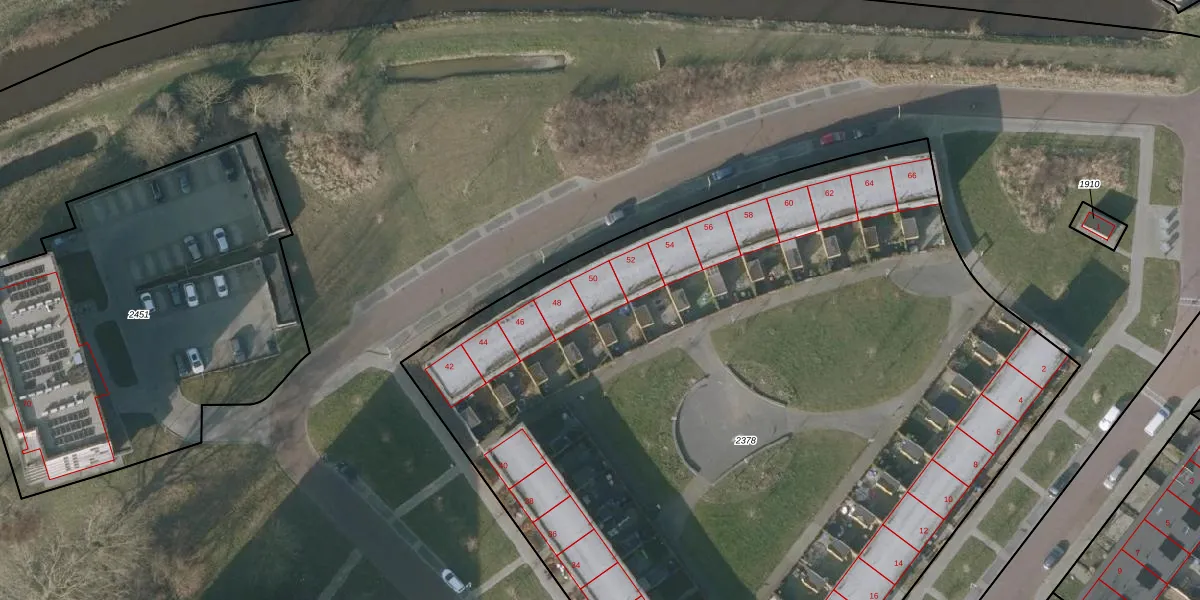 Het adres is gelegen op perceel 2378 in de sectie E en de kadastrale gemeente Sneek. De kadastrale aanduiding is aldus SNE00-E-2378. De gemiddelde perceeloppervlakte in de kadastrale gemeente Sneek is 2093,37 m². Dit perceel is met zijn 6641 m² dus groter dan gemiddeld. Het grootste perceel in de kadastrale gemeente is 61,3 ha. Het kleinste perceel heeft een oppervlakte van 0 m². Op het perceel liggen in totaal 33 adressen. In de Basisregistratie Kadaster (BRK) werden de grenzen van het perceel geregistreerd op 22-07-2019.
